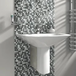 - We recommend matching a white or grey tile to complement this mosaic tile.